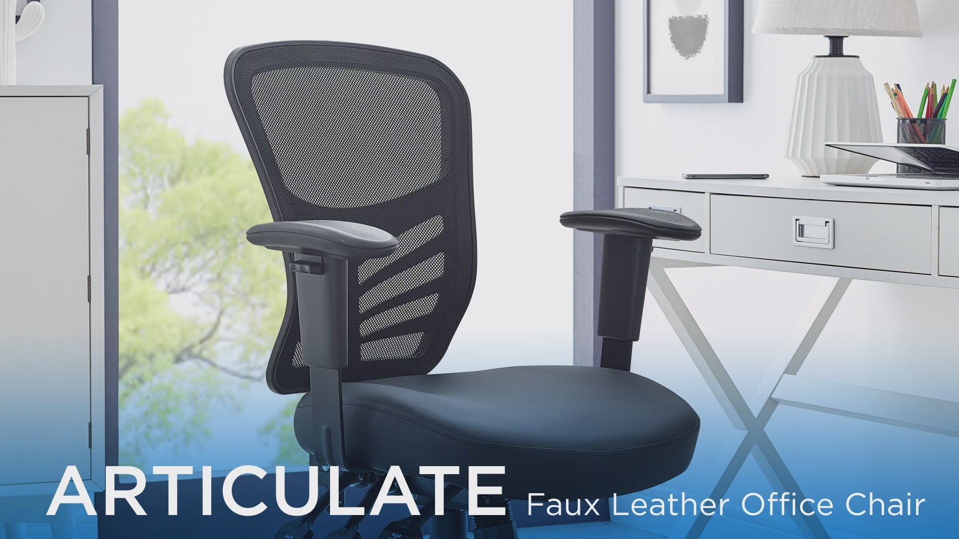 Marquez un tournant dans vos tâches de bureau avec cette chaise de bureau ergonomique en maille verticale. Laissez le dossier en maille respirante et le siège en vinyle moelleux servir de simple extension à vos activités de travail quotidiennes. La hauteur du dossier et la profondeur du siège sont toutes deux facilement réglables pour s'adapter à votre taille et à votre taille, tandis que deux accoudoirs robustes sont réglables en hauteur pour vous aider à vous positionner verticalement. Articulate comprend également des fonctions de tension d'inclinaison et de verrouillage pour incliner et incliner confortablement selon vos besoins. Équipé de cinq roulettes à double capuchon, donnez-vous la possibilité de glisser facilement sur les sols en moquette tout en effectuant naturellement des tâches sans effort.