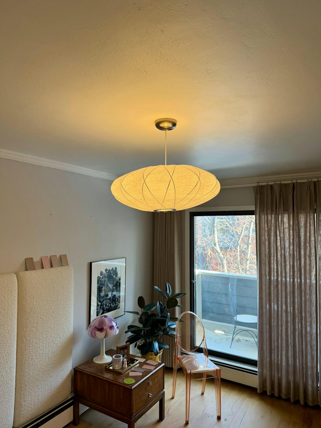 A raised crisscross pattern accentuates the wide, flat shade of the Nelson Saucer Crisscross Bubble Pendant (1952), adding contours to its form. Produced in collaboration with the George Nelson Foundation, the fixture comes in two sizes and with nickel-plated mounting hardware. The Nelson Crisscross Pendant is part of the Nelson Bubble Lamp series. Bulb (not included): LED, CFL, or incandescent; E26 base; 150W. UL Listed.