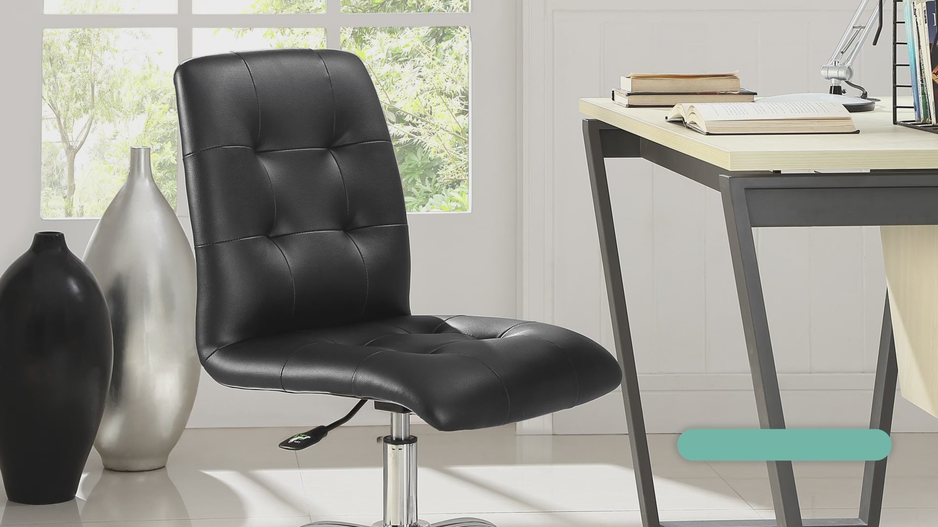 L'étiquette préside à la chaise de bureau sans accoudoirs Prim au style bien pensé. Moderne au toucher, luxueuse à l'œil, Prim présente des boutons capitonnés profonds, un revêtement en similicuir de qualité et une garniture élégante pour plus de finesse. Prim est réglable en hauteur, pivote à 360 degrés et est équipée d'une base en acier chromé poli avec cinq roulettes en nylon à double roue. Parfait pour les salles de conférence, les postes de travail ou les bureaux, Prim est une pièce moderne qui fonctionne admirablement pour promouvoir les plus belles civilités de la vie.