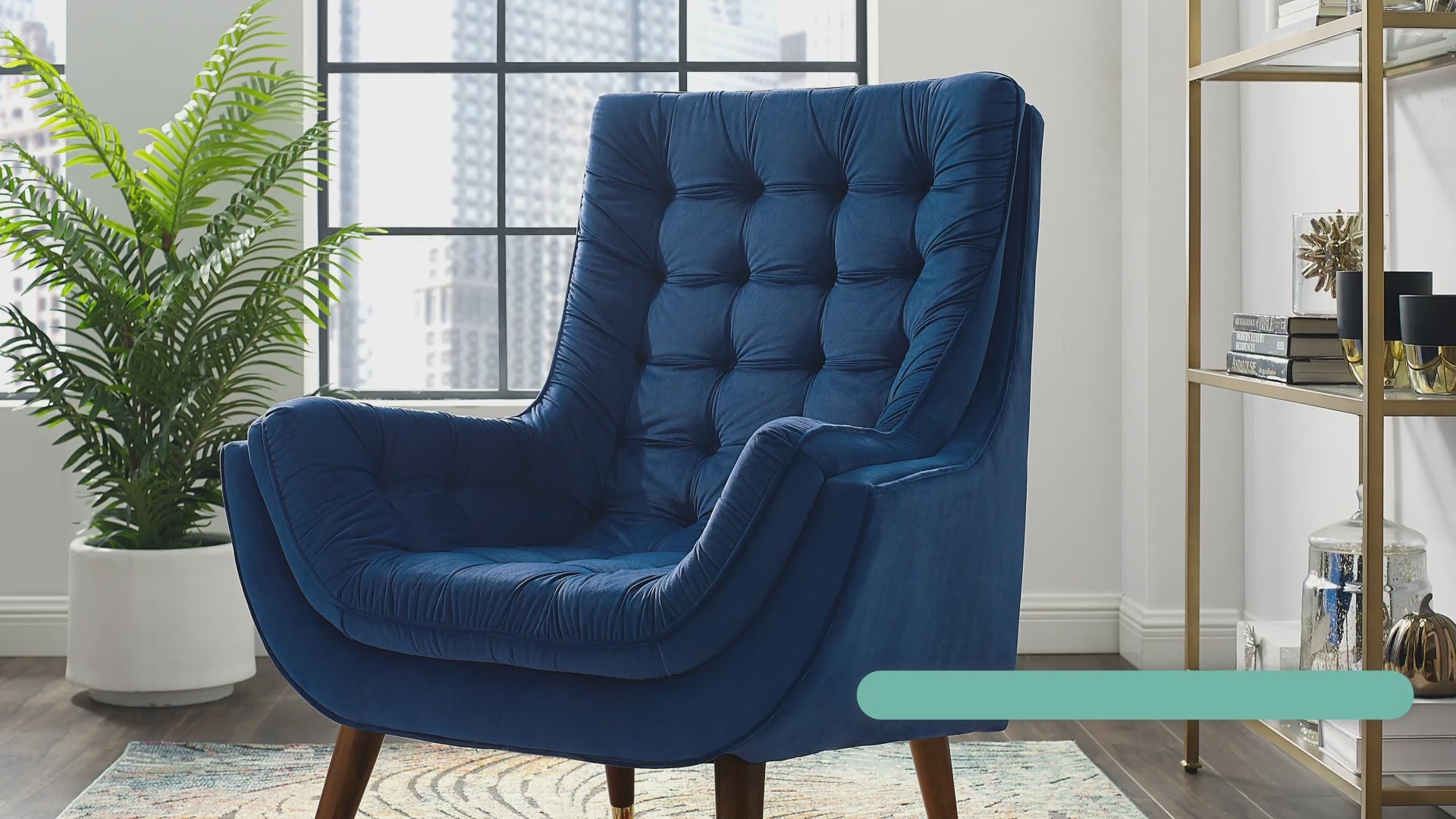 Améliorez votre temps libre avec l'élégance et le luxe de la chaise longue en velours Suggest Performance. Recouverte de velours performant résistant aux taches, Suggest offre une sophistication avec un capitonnage profond, des accoudoirs évasés et des pieds en bois évasés avec des manchons en métal doré. La texture riche de ce fauteuil est douce au toucher, tandis que le rembourrage en mousse dense et moelleuse, une poche de siège profonde, des embouts de pied non marquants et une inclinaison douce offrent un soutien inégalé pendant la lecture, le repos, la détente ou la conversation. Une chaise d'appoint ou de salon chic d'inspiration milieu du siècle pour le salon, la chambre ou le coin lecture, Suggest est un ajout extrêmement confortable à la maison moderne. Capacité de poids de la chaise : 331 lb.