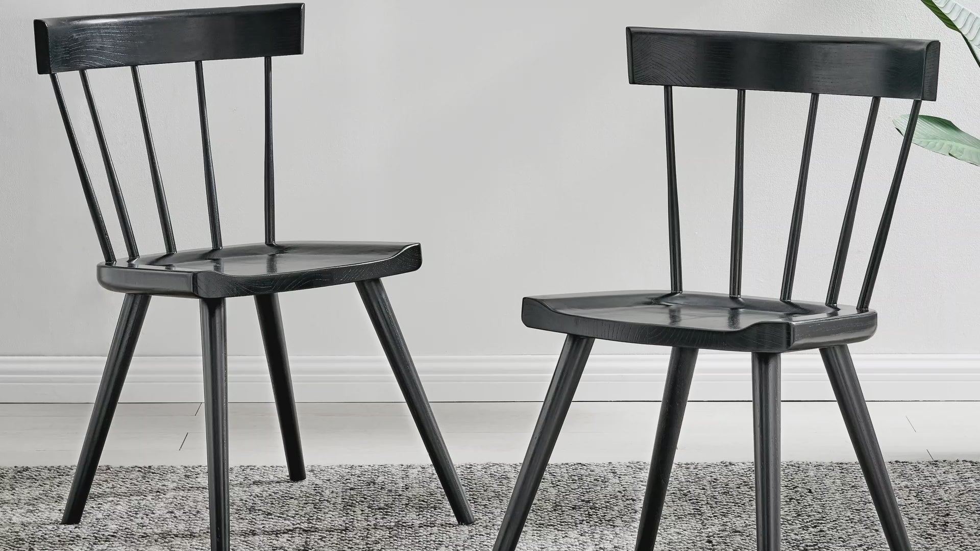 Complement a wide variety of color schemes and decor styles in your dining space with the Sutter Wood Dining Side Chair Set. Crafted with durable elm wood, this dining chair set features thin spindles and a charming tapered silhouette that brings modern farmhouse style to your dining table. Splayed dowel wood legs with non-marking caps support this versatile chair set that also serves as beautiful accent chairs in a living space, bedroom, or office.