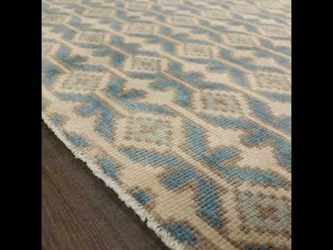 The Cera collection transforms the timeless beauty of mosaic tiles into luxurious wool artistry, blending geometric precision with sumptuous texture. The Boden rug dazzles with its intricate tile-inspired pattern, where light blue geometric forms dance across a creamy canvas, accented by vibrant orange, earthy taupe, and deep blue details - all framed by matching wool fringe for a polished finish. Meticulously hand-knotted in India at 75 knots per square inch, this heirloom-quality piece boasts a luxuriously washed wool surface that softens the crisp patterns while enhancing their depth. Perfect for high-traffic living rooms, busy hallways, or family spaces, its naturally stain-resistant wool construction stands up to pets, children, and daily life while developing a richer patina over time. More than just a rug, it's a durable work of art that tells a story of craftsmanship with every step.