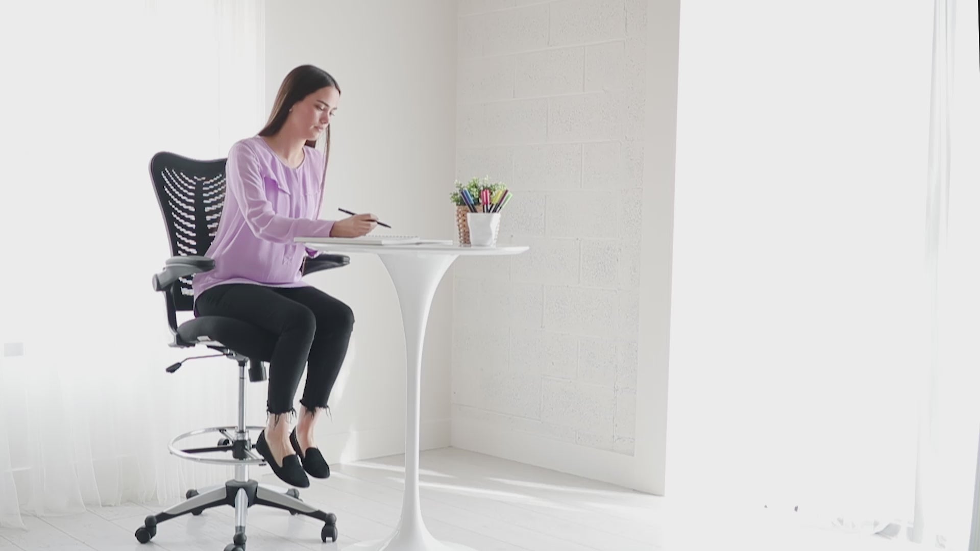 Energize your office with the Charge Drafting Stool. Charge features a distinctive butterfly form and ribbed design that delivers exceptional appeal and comprehensive ergonomics. Outfitted with a steel foot ring, extra tall gas cylinder, five dual-wheel casters, nylon frame with a two-tone base, padded vinyl armrests that easily rotate up 90 degrees, and a generously padded mesh seat, Charge is an esteemable drafting stool suitable for the complex needs of the modern office.
