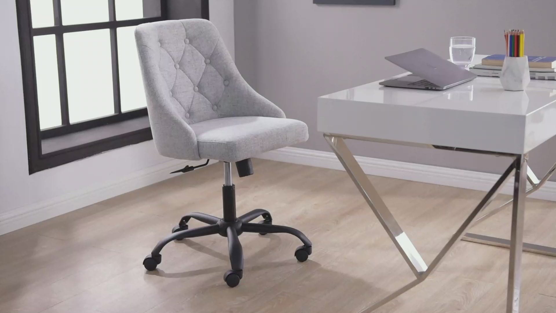 Introduce modern style and vintage modern elegance to your home office with the Distinct Tufted Upholstered Office Chair. Featuring beautiful button tufting, this desk chair is padded in dense foam and upholstered in soft, polyester fabric offering a supportive, comfortable place to sit during the workday. A black powder-coated base and five dual-wheeled nylon casters provide easy movement over hardwood or carpeted surfaces while the full 360-degree swivel, tilt tension control, and pneumatic height adjustment create a custom seating experience. Perfect for the modern home or office, this office chair is a desirable addition to any workspace. Chair Weight Capacity: 220 lbs.