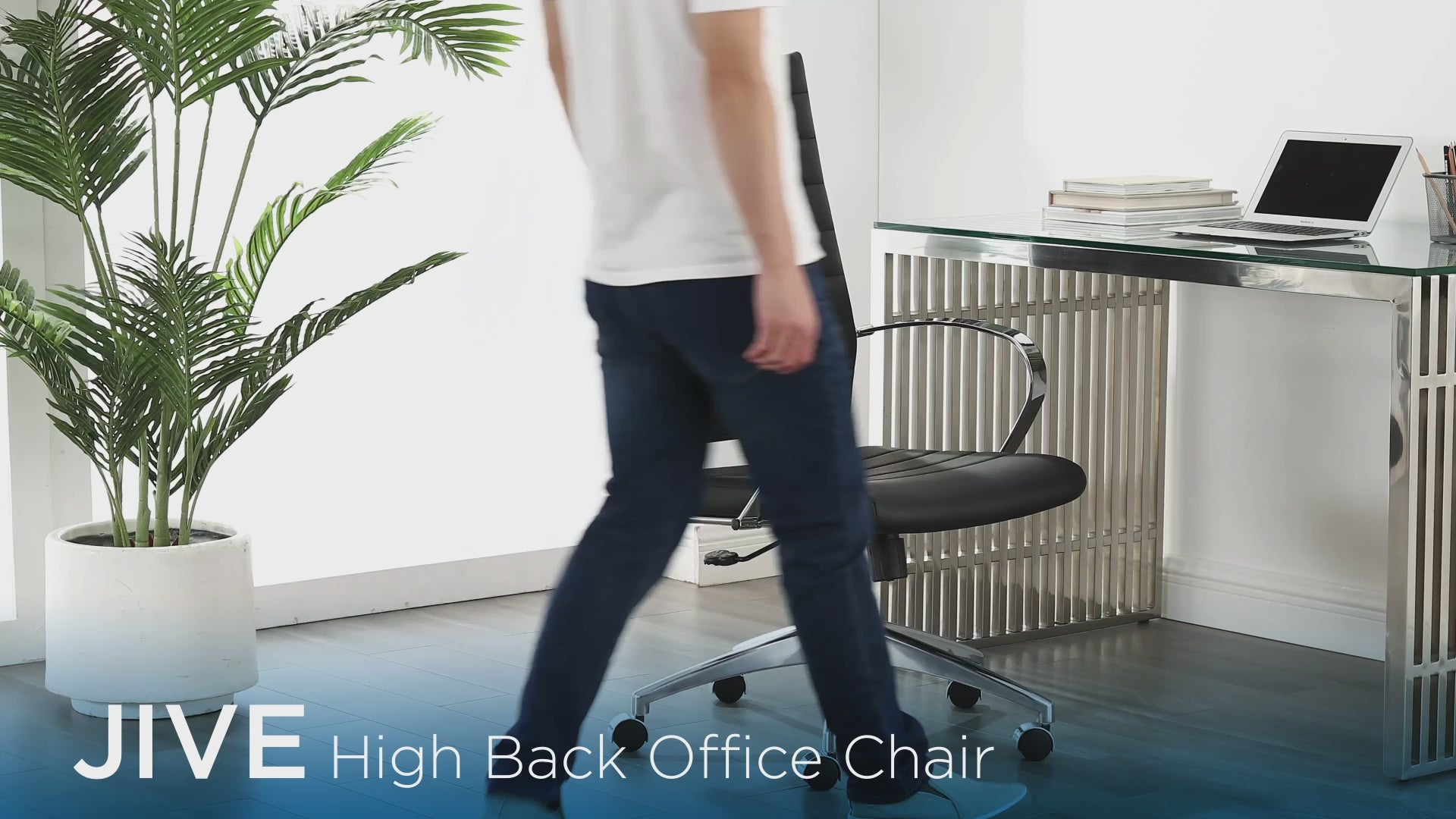 Steer the course and sail to an island called style. Jive is the result of chair makers who decided to design a chair that just works. Functionally, it is a pleasure to sit in as the durable ribbed vinyl back provides natural posture support. The seat cushion is padded, and the form of the armrests was intended to maximize a 90-degree wrist angling for typing. Jive’s chrome-plated aluminum base is fitted with five dual-wheel casters, while a tension knob and tilt lock allow for easy back position adjustments. This is a chair made for the modern office and a welcome embodiment of the spirit of progress and determination.