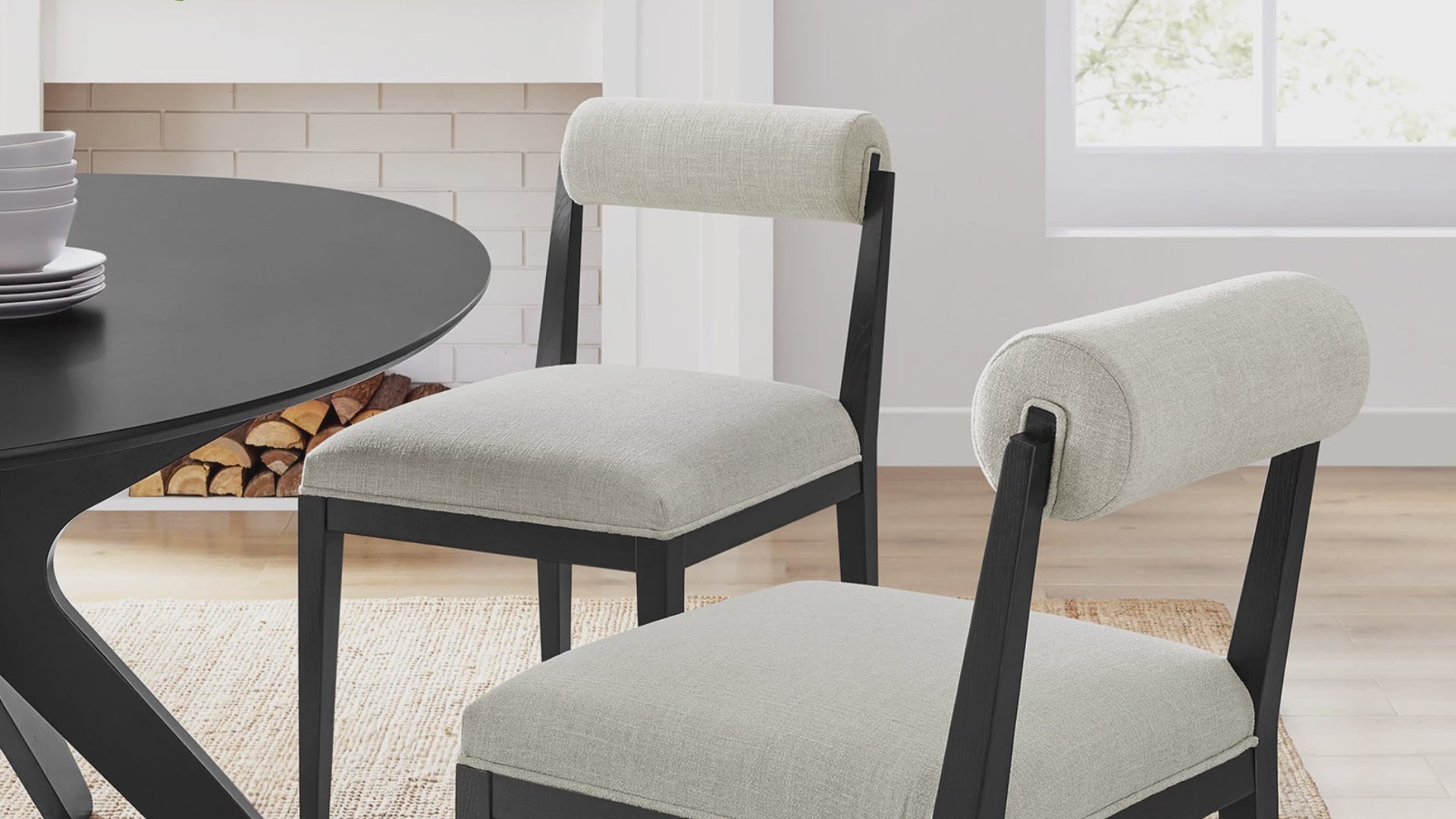 Bring the Kai Side Dining Chair into your home, a piece where bold, modern design meets plush, inviting textures. Combining chic fabric and wood, the Kai Armless Chair features sharp, angular lines and a minimalist design. It's an ideal fit for various spaces, whether as a side chair in the dining room, an accent chair in the living room, or as a stylish and comfortable kitchen chair. Built on an ash wood frame and legs, this farmhouse dining chair showcases a unique rolled backrest upholstered in premium fabric. This distinctive design element not only adds visual interest but also offers a soft, inviting texture that contrasts with the sleek lines of the wood accent chair's frame. The fixed cushion seat of this contemporary dining chair provides just the right amount of firmness for long meals and conversations. Equipped with non-marking foot pins to protect your floors, the Kai Fabric Dining Chair requires no assembly and is ready to use straight out of the box. Weight Capacity: 330 lbs.