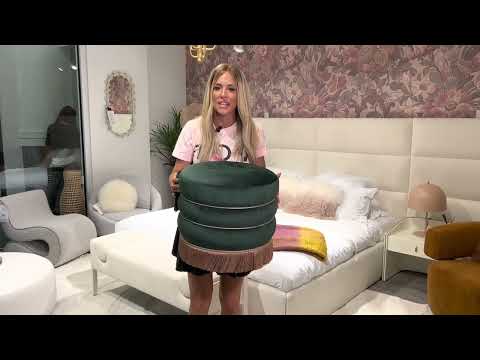Retro meets modern with the Lakka ottoman. This intricately designed ottoman features luxurious velvet upholstery and vegan leather piping while its tasseled base completes the look. Available in multiple colors to suit your decor