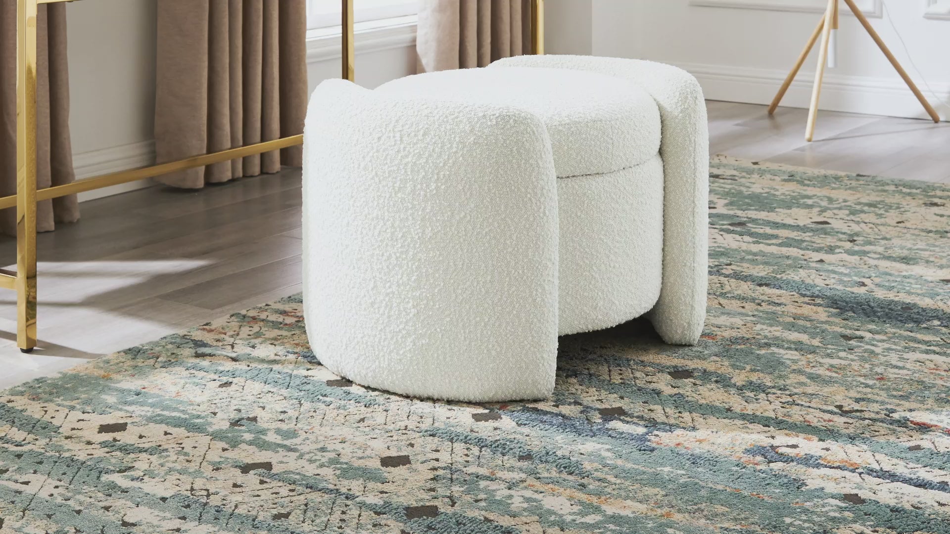 Relax amidst trending style and modern comfort with the Nebula Boucle Upholstered Accent Ottoman. Bringing appreciated texture to your living space, entryway, bedroom, or other seating area, this accent ottoman is upholstered in a beautiful boucle fabric made with looped yarns to create its charming nubby texture. Dense foam padding offers a premium seating experience and is perfect for kicking your feet up and relaxing. This storage ottoman has a removable seat to reveal the spacious storage area perfect for hiding TV remotes, an extra blanket, magazines, books, and more. Weight Capacity: 275 lbs.