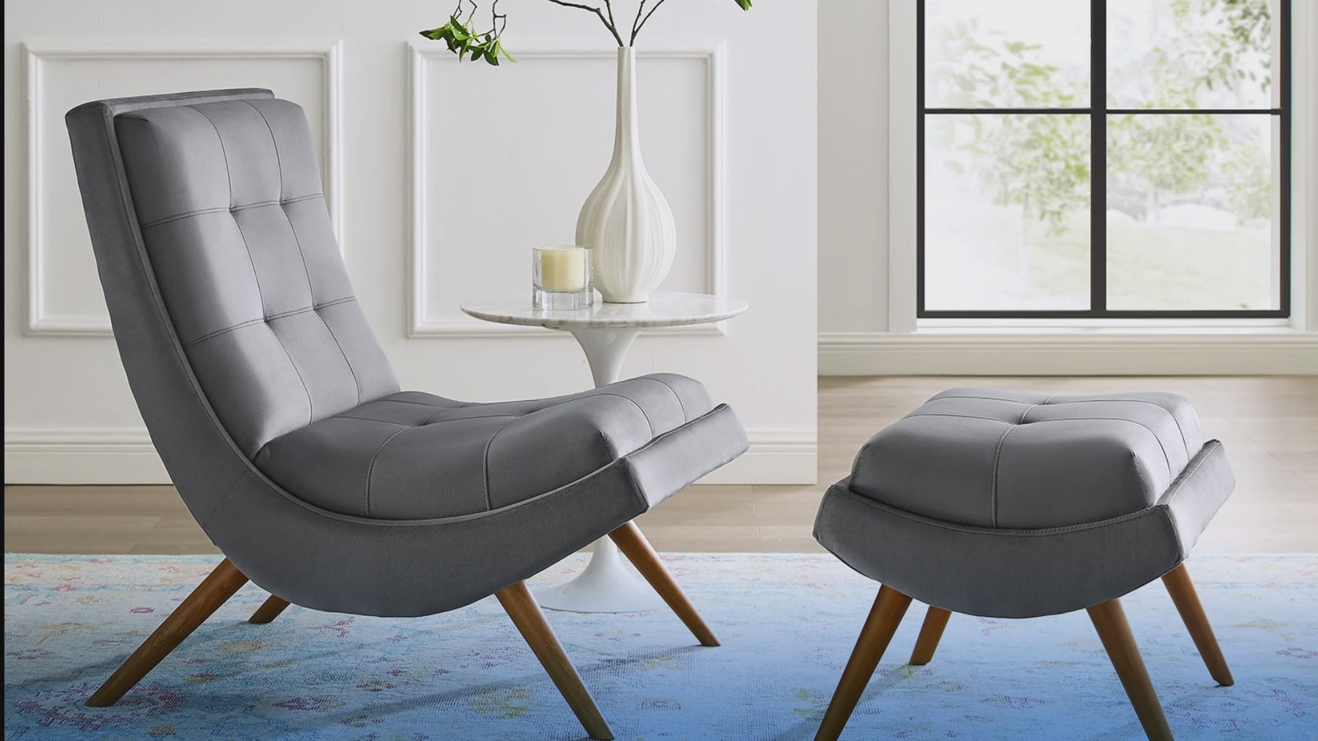 Ramp Upholstered Performance Velvet Lounge Chair and Ottoman Set
