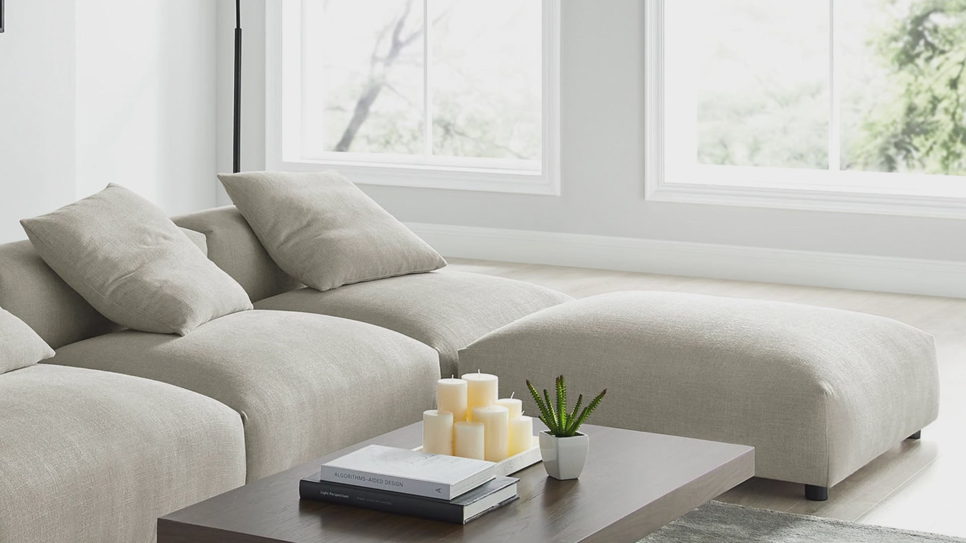 Revel in ultimate comfort and modern style with the Solace Modular Armless Loveseat and Ottoman Set. This oversized fabric armless loveseat with a matching ottoman is perfect for any living room, offering endless flexibility. Its modular furniture design allows you to change the arrangement to suit the needs of the moment or expand your seating by adding more pieces in the future. Featuring a sturdy frame, dense foam padding, and a sinuous spring support system, the Solace Small Sofa Couch grants a premium seating experience with it's soft textured woven fabric upholstery. The comfy upholstery adds a cozy, casual vibe, making this armless two-seater sofa a perfect addition to any living space or lounge area. Equipped with non-marking plastic glides and complementing accent pillows, this loveseat sectional is both stylish and practical. With no assembly required, you can enjoy immediate relaxation with this loveseat sofa with ottoman set. Loveseat Weight Capacity: 800 lbs., Ottoman Weight Capacity: 500 lbs.