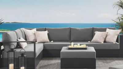 Enliven your alfresco spaces with the Tahoe Aluminum Outdoor Patio 3-Piece Sectional Sofa. This modern sectional sofa is constructed with well-crafted, durable powder-coated aluminum, dispensing contemporary elegance in your outdoor lounge spaces. Its dense foam padding ensures sustained comfort, making it ideal for poolside lounging or as outdoor deck furniture, complete with UV and water-resistant fabric-covered seats and backrests. The cushion covers are removable for easy machine washing. Part of a modular outdoor furniture collection, this sectional sofa offers adaptability and style while entertaining or relaxing. The entire Tahoe aluminum patio furniture set features non-marking foot glides to protect your deck or patio floor and comes with easy-to-follow assembly instructions. Set Includes: 1 Left-Facing Loveseat (Weight Capacity: 661 lbs.), 1 Right-Facing Loveseat (Weight Capacity: 661 lbs.), 1 Corner Chair (Weight Capacity: 331 lbs.)