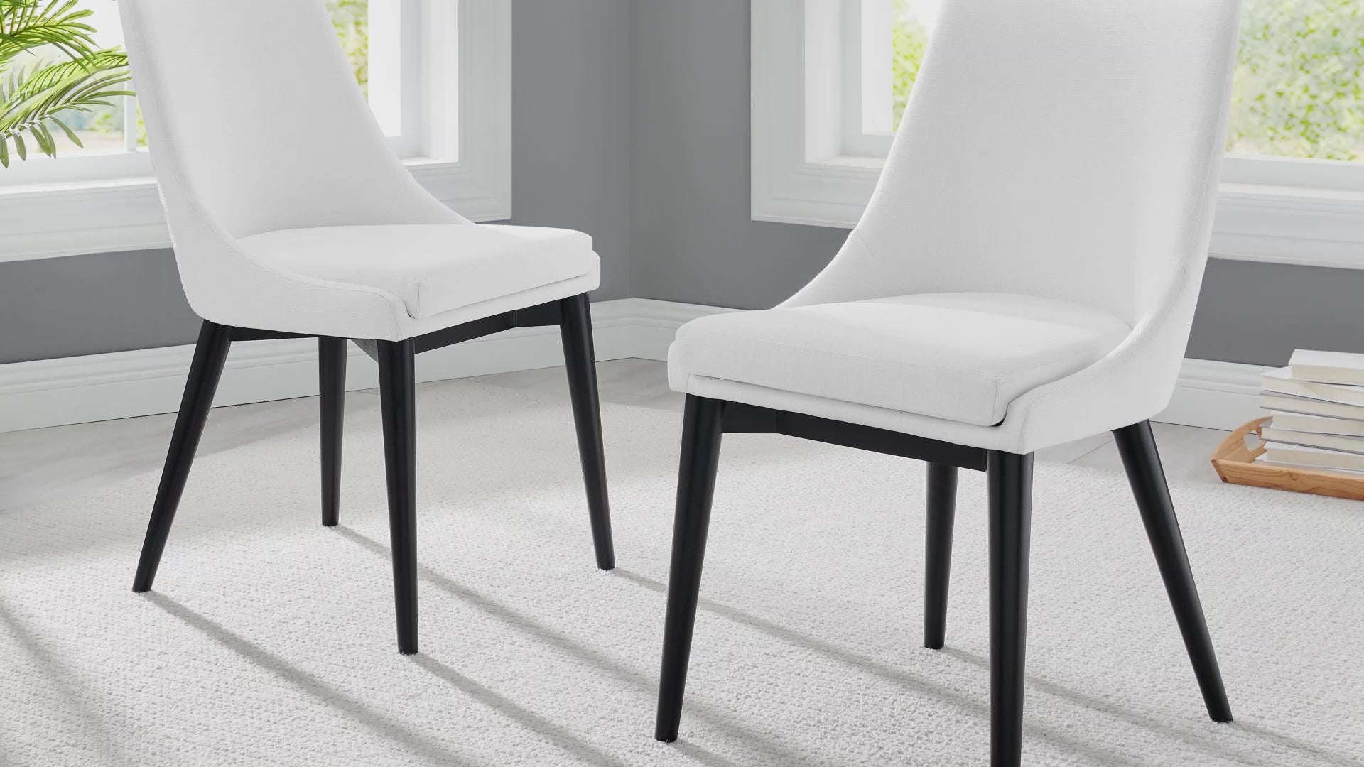 Energize your décor with the sleek Viscount Dining Chair. Designed with a minimalist chic form and progressive feel, this side chair comes densely padded in foam, finely upholstered in polyester fabric, and supported by tapered wood legs coated black. From the sheer force of the design to the exceptional versatility of the uses, Viscount is perfect for modern contemporary décors seeking a bold chair that makes a statement.