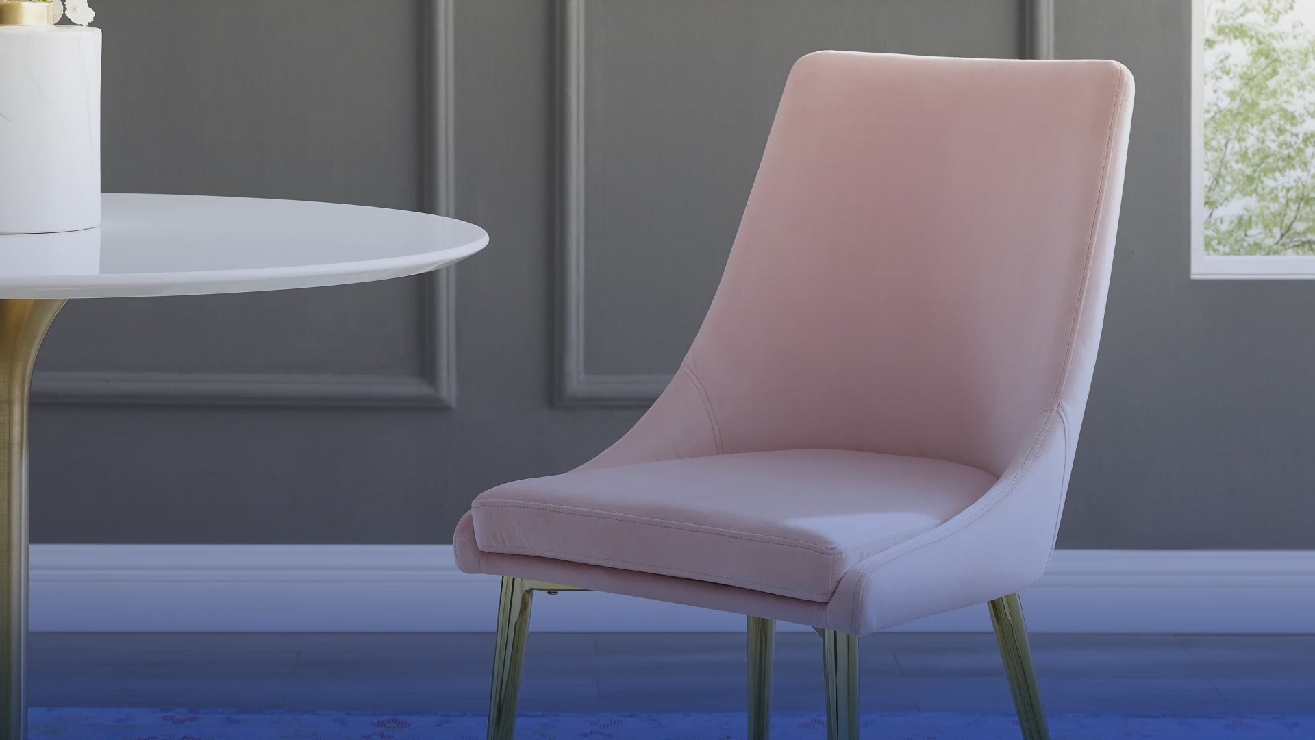 Revitalize your dining decor with the Isle Dining Chair. Graceful, minimalist lines blend seamlessly with the lush comfort of Isle's soft, stain-resistant performance velvet upholstery, dense foam padding, and rests atop gold stainless steel tapered legs. Isle's versatile vintage modern style makes this ideally suited for a variety of rooms. Place Isle in the dining room or kitchen as a dining chair, or in the living room, entryway, or bedroom as an accent chair. This modern accent dining chair supports up to 300 lbs.