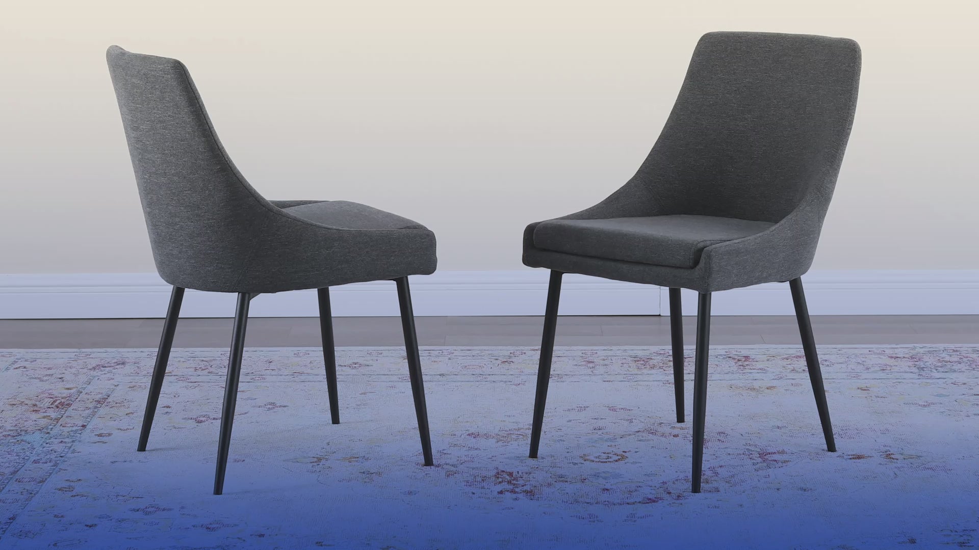 Revitalize your dining room decor with the Viscount Upholstered Fabric Dining Chairs - Set of 2. Graceful, minimalist lines blend seamlessly with the luxe comfort of Viscount’s soft and durable polyester fabric upholstery. Supported by dense foam padding and resting securely on matte black stainless steel tapered legs, Viscount is a versatile accent chair. A vintage modern style makes these fabric chairs ideally suited for a variety of rooms. Place Viscount in the dining room or kitchen as dining chairs, or in the living room, entryway, or bedroom as accent chairs. Chair Weight Capacity: 300 lbs.