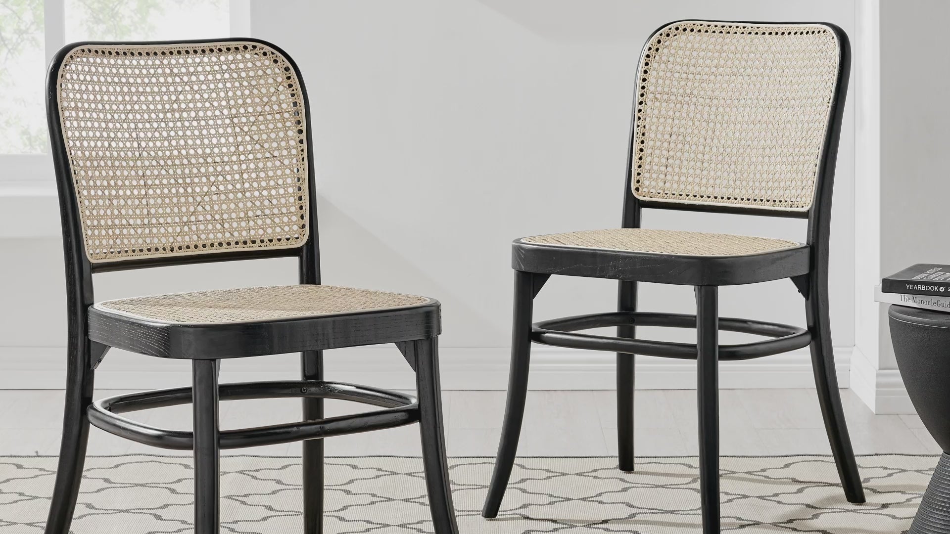 Blend rustic farmhouse charm and coastal serenity in your dining space with the Winona Dining Side Chair. Featuring a woven rattan cane backrest and seat, this dining chair instills vintage modernity around your dining table or as an accent chair in your living space. This dining side chair is complete with a durable elm wood frame with rounded edges and a stretcher for added interest. Includes non-marking foot caps. Weight Capacity: 330 lbs.