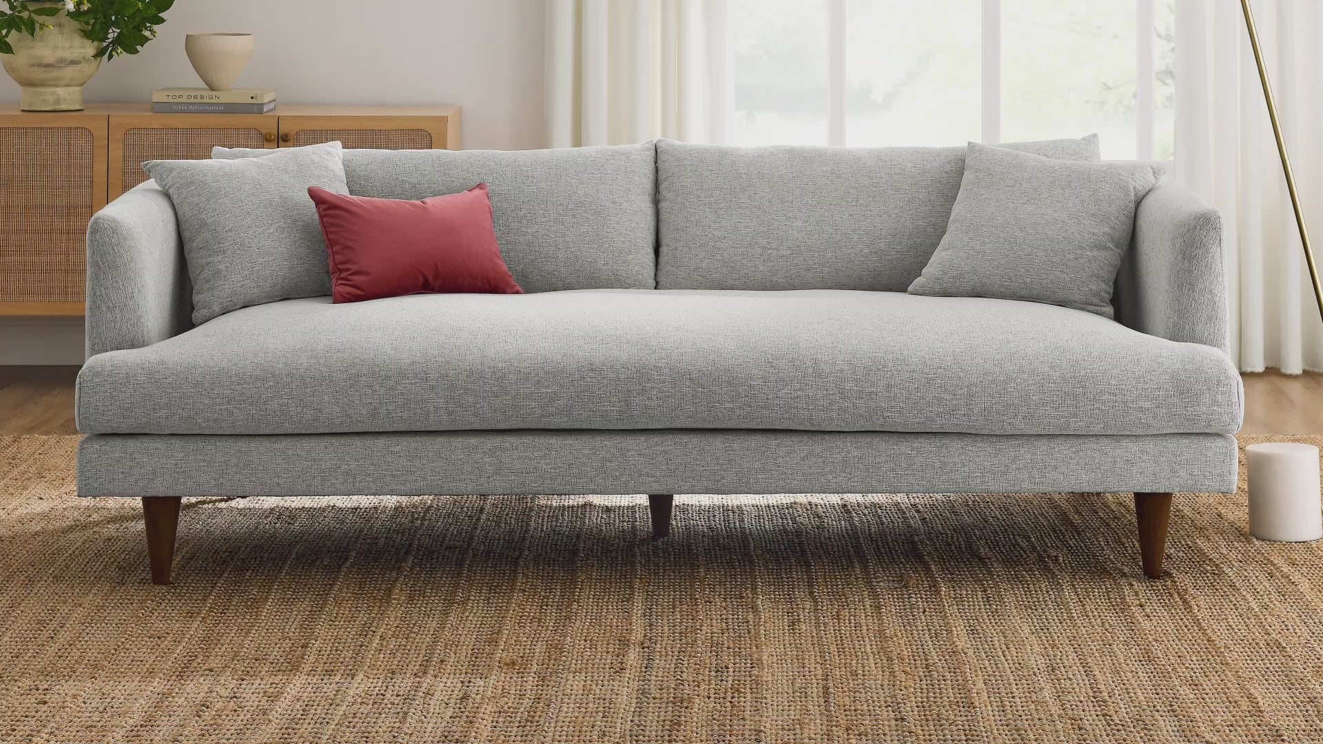 Dive deep into comfort and conversations with the Zoya Upholstered Down-Filled Sofa. The perfect addition to modern living rooms, family rooms, or game rooms, Zoya's design invites you into an immersive lounging experience, with a low, comfortable profile and spacious deep seating. Upholstered in polyester fabric with a down blend and dense foam filling, this living room sofa provides a soft, cloud-like sensation that retains its shape. Accompanied by back cushions and two square throw pillows, this sofa delivers a lounging experience optimized for comfort. The convenience of removable and washable cushions makes maintenance a breeze. Underneath a lavish exterior, Zoya integrates pocket springs, which offer added support, and comes perched on sleek tapered rubberwood legs and set on a solid wood frame. Whether you're hosting a movie night or reading your favorite book, the Zoya Fabric Sofa is your ticket to a luxurious lounge. Comes equipped with non-marking foot caps. Assembly required. Weight capacity: 600 lbs.